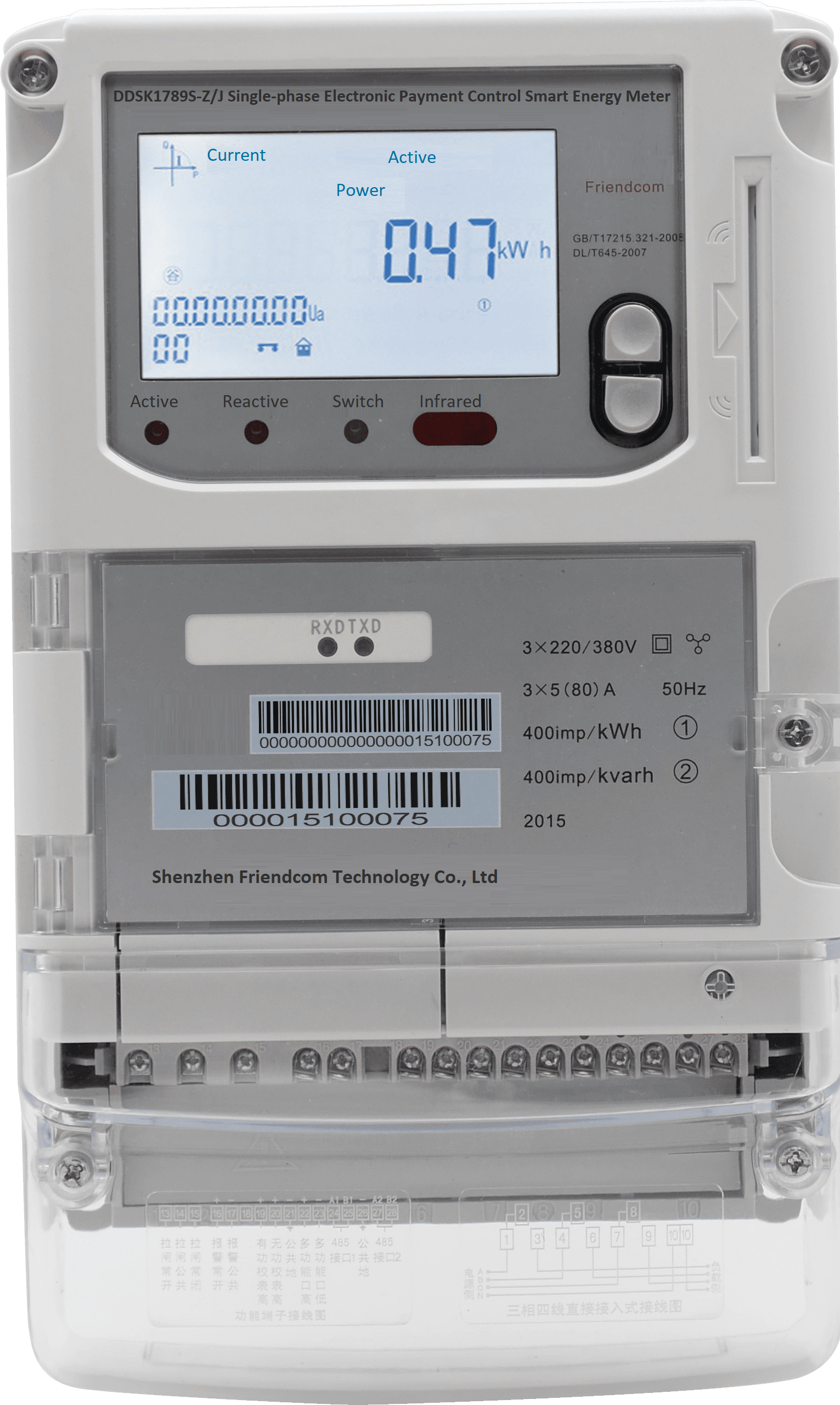 DTSK1789-Z/J three-phase payment control smart energy meter has the functions of active and reactive time-sharing rate electric energy metering, data processing, real-time monitoring, automatic control, and information interaction. It is mainly used in power plants, large users, distribution transformers, station transformers, and various power data measurement and measurement of various enterprises and institutions. It uses RS485, power line carrier, micro-power wireless and other scenarios for data transmission.